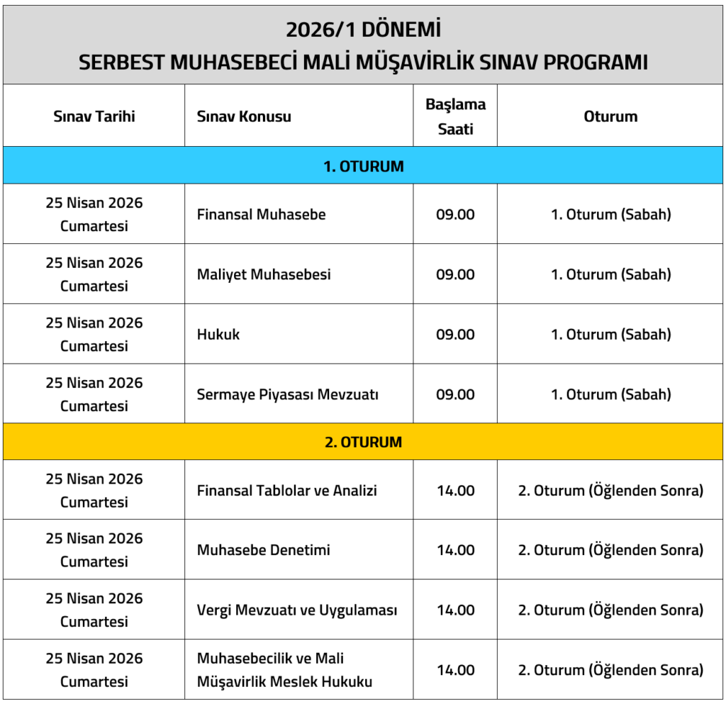 Katılımcıların; https://belge.tesmer.org.tr/ internet adresinde erişimine açılan Sınava Giriş Belgesini ve https://www.tesmer.org.tr/ internet adresinde yayımlanan TÜRMOB SERBEST MUHASEBECİ MALİ MÜŞAVİRLİK SINAVI UYGULAMA KILAVUZU’nda yer alan uyarıları dikkatlice okuyarak sınavlara katılmaları önerilmektedir.